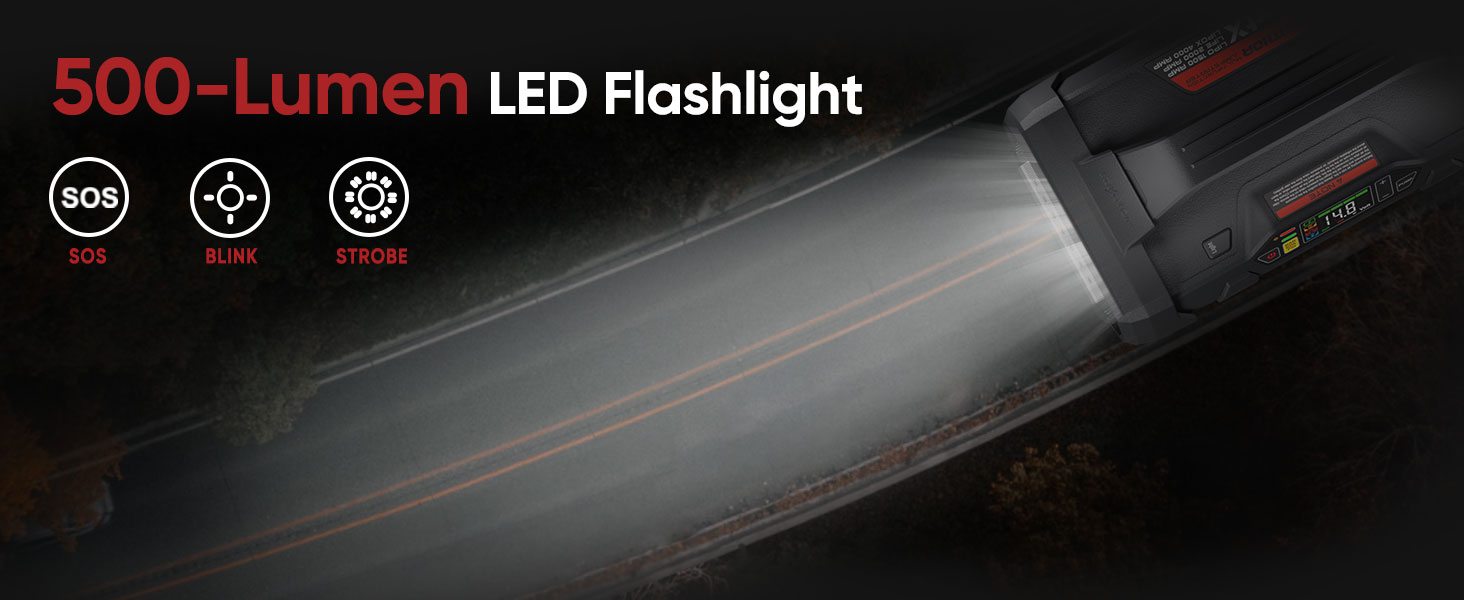 Beyond compliance with EU Regulation 2023/1542, the ApartX series delivers practical features for roadside emergencies. The built-in 500-lumen LED flashlight includes multiple modes—SOS, Blink, and Strobe—providing essential visibility and signaling capability when you need it most.